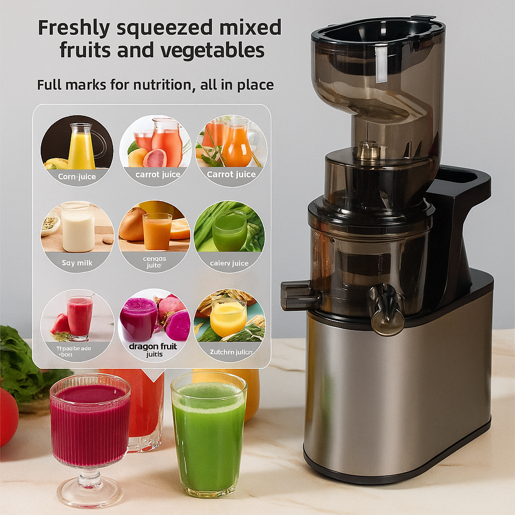 Enjoy the freshness of every sip with our advanced slow juicer — designed to extract pure nutrition from fruits and vegetables while preserving taste and vitamins. Whether it’s carrot, celery, or dragon fruit, you’ll get smooth, nutrient-rich juice that fuels your body and brightens your day.
